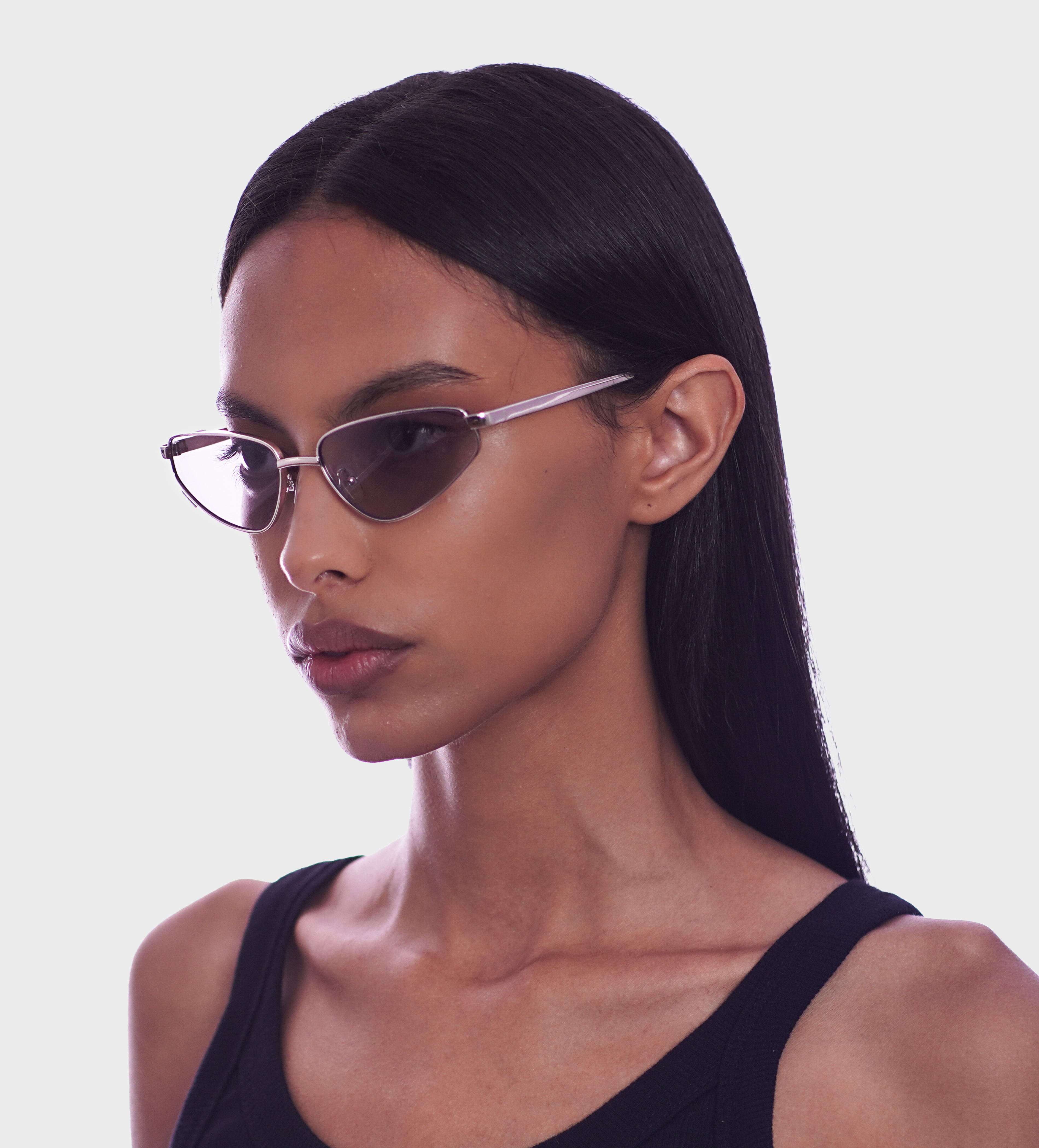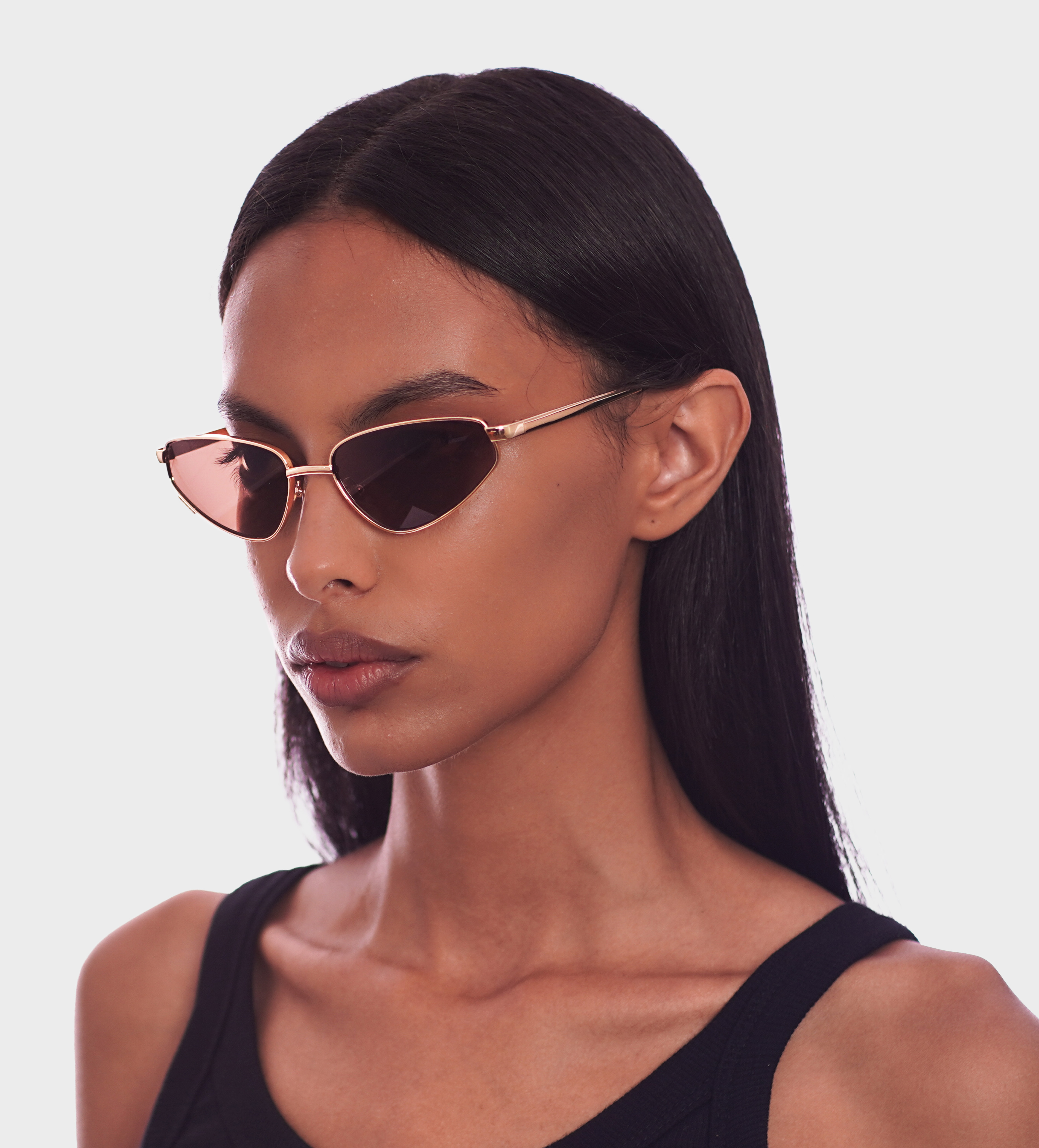 | O modelo LUAR apresenta uma estrutura em metal com acabamento de alto brilho, destacando um shape cat eye preciso e marcante. Seu desenho estruturado transmite elegância e força, elevando o look com presença e definição. | ||||